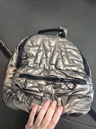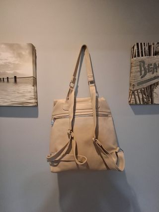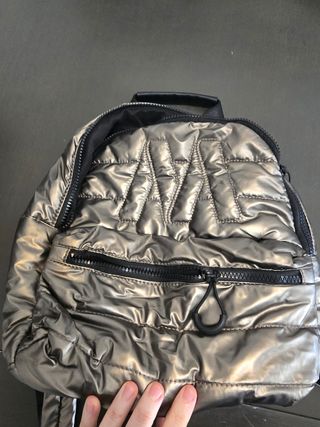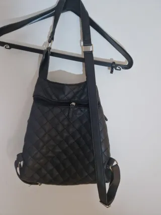 Bolso versátil que se puede usar como mochila o bolso de hombro. Tiene una cremallera rota - Diseño acolchado. - Cierre de cremallera.