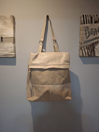 Muy cómodo y moderno. Puedes llevarlo del asa o en el hombro. Tiene bastante capacidad para lo esencial, con bolsillo interior con cremallera. Entrego en Lidl de camino Moncada número 83 de Valencia o envío si quieres.
