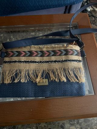 Precioso bolso bandolera de color azul y beige. Ideal para el verano - Confeccionado con materiales de alta calidad. - Diseño único y elegante. - Asa larga para llevarlo al hombro o cruzado. - Perfecto estado.