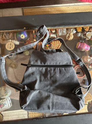 Mochila de la marca Misako en color gris. Diseño moderno y práctico. En perfecto estado, como nueva, menos de un año de uso. - Compartimento principal espacioso. - Bolsillo frontal con cremallera. - Asas ajustables.