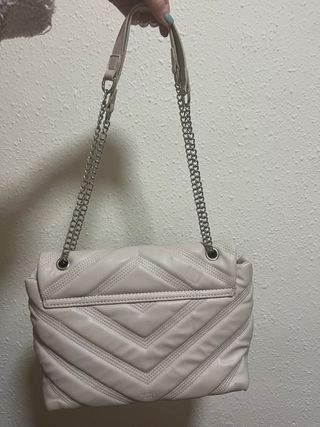 Bolso de mano o al hombro de la marca Misako. - Diseño acolchado con pespuntes en forma de V. - Asa de cadena metálica combinada con material. - Cierre de solapa.