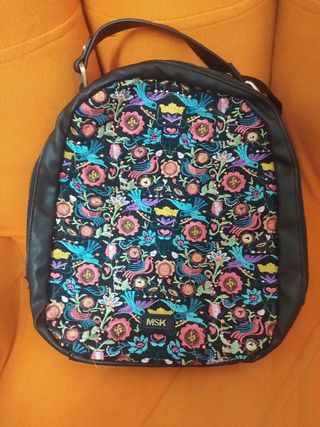 Preciosa mochila de la marca Misako. Es de tamaño mediano y tiene un diseño floral muy bonito. Se puede usar a modo de mochila. Se encuentra en un estado impecable. Solo se ha utilizado una vez.