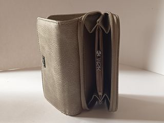 Preciosa cartera de la marca Misako, en color beige. Es compacta y elegante. - Tiene múltiples compartimentos para tarjetas y billetes. - Cierre de cremallera para mayor seguridad. - Material de textura atractiva.