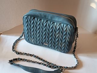 Precioso bolso de la marca Misako. Es de color verde azulado y tiene un diseño acolchado con forma de espiga. - Asa larga de cadena metálica. - Cierre de cremallera. - Bolso en perfecto estado. - Envíos en 24 H - Regalos increíbles con cada compra.