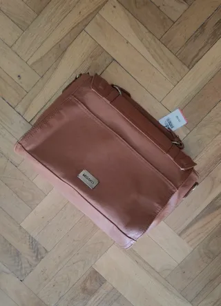 Bolso bandolera color marrón claro de Misako. Con bolsillos delantero y trasero. cremallera interior y 2 pequeños compartimentos. medidas 28*21*11'5. Sin apenas uso.
