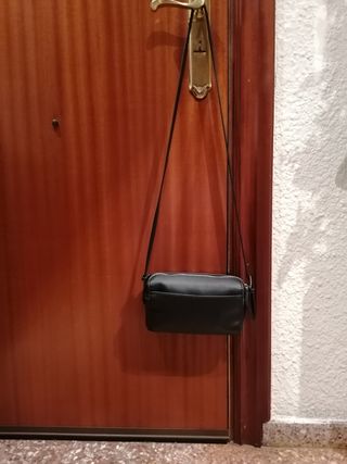 Bandolera de la marca Misako. Es de color negro y tiene un diseño elegante. - Asa larga regulable para llevarla al hombro o cruzado. - Cierre con cremallera y botón. - Bolsillo interior con cierre. - Material: polipiel.