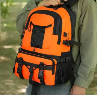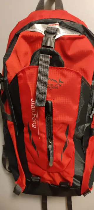 Mochila de gran capacidad, ideal para actividades al aire libre. - Diseño en color naranja y negro. - Capacidad de 40 litros. - Compartimentos múltiples para organización. - Correas ajustables para mayor comodidad. - Bolsillos laterales de malla. Tiene compartimentos para colocar los palos o bastones de trekking. Ver fotos. Nueva. Más mochilas en mi perfil