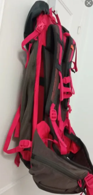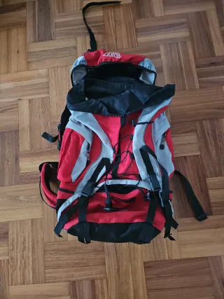 Mochila roja profesional para senderismo, montaña, barranquismo, escalada y excursiones de varios días con material, cuerda, tienda de campaña, etc. Cómoda para viajes largos de mochilero si buscas capacidad para mucho equipaje. Está en perfecto estado, tiene apenas 2 usos, la vendo por desuso. No incluyo una pequeña bolsa de tela accesoria que venía de primera mano ya que está deteriorada (Esto no influye en el funcionamiento o la capacidad se la mochila).
