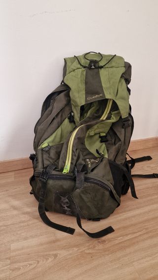 Quechua Forclaz mochila de montaña de Decathlon 80L (70+10) Muy robusto y fuerte, ha dado la vuelta al mundo a muchos lugares. Hay un par de lugares donde las costuras están desgastadas, pero sigue siendo robusto y fácil de arreglar.