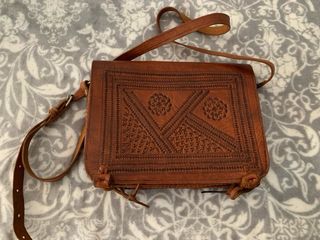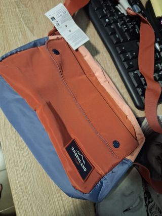 Bolso de mujer con un diseño moderno y llamativo, ideal para complementar tu estilo. - Acabado en piel sintética. - Detalles textiles con estampado étnico. - Cierre de cremallera. - Correa ajustable para llevar al hombro o cruzado. - Aún conserva la etiqueta original.