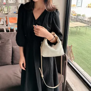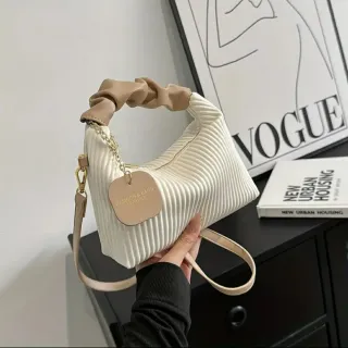 Bolso de mano con un diseño moderno y sofisticado. - Asa fruncida. - Detalle de cadena. - Etiqueta decorativa. - Textura plisada.