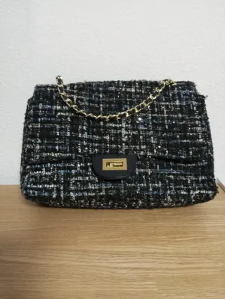 Bolso bandolera negro con detalles en dorado para mujer, en perfectas condiciones.