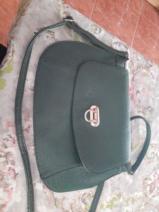 Bolso bandolera para mujer de material poliéster en color verde oscuro, con cremallera y correa ajustable. Nuevo sin estrenar, con su etiqueta.