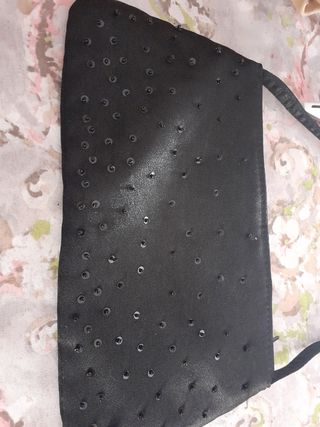 Bolso negro de mujer con lentejuelas para ir de fiesta y pasarlo bien. medidas: 26 cms de ancho 14 cms de alto 2-3 cms de fondo por un lado tiene lentejuelas y por el otro lado no, según te guste llevarlo
