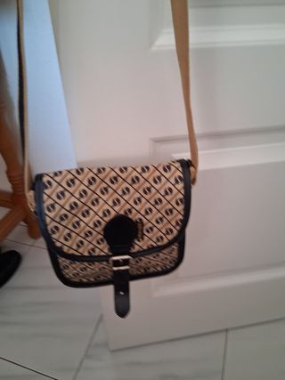 Bolso bandolera pequeño de mujer. Colo azul y crema. Como nuevo.