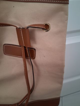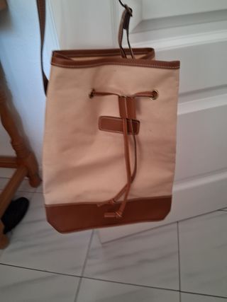 Bolso de mujer,color marrón muy claro.con 2 departamentos por dentro y varios bolsillos. Bonito y elegante