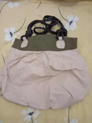 Bolso para mujer hecho de tela de Capote y cuero. Alto: 22 Ancho: 30 Fondo: 13