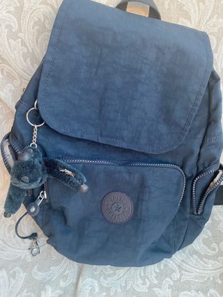 Mochila de la marca Kipling azul marino. Diseño práctico y moderno. - Compartimento principal con cierre de cremallera. - Bolsillo frontal con botón a presión. - Detalle de logo circular en relieve.