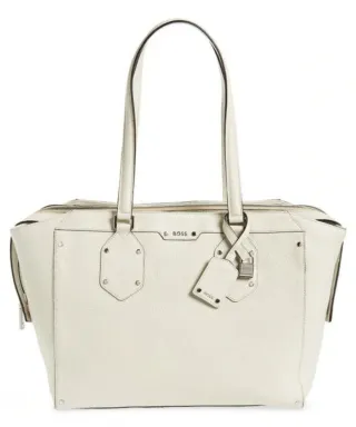 Elegante bolso de piel de la marca BOSS. Bolso de mano para mujer de la marca BOSS (anteriormente Hugo Boss). El bolso es de color blanco/hueso, fabricado en cuero, y presenta un diseño clásico y sofisticado. Nuevo sin usar. Bolso de mano tipo satchel o tote estructurado, con asas superiores y herrajes plateados. Piel, cuero. Medidas 34 x 26 x 14 CMS.