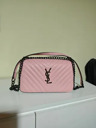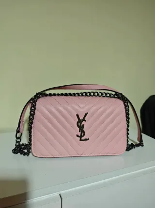 Elegante bolso de mano con cadena. - Diseño acolchado en chevron. - Logo metálico YSL. - Cadena metálica negra.