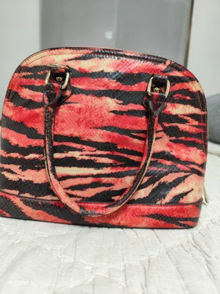 Bolso de mujer con un diseño llamativo y moderno. - Combinación de colores vibrantes. - Detalle de estampado animal. - Cierre con hebilla.