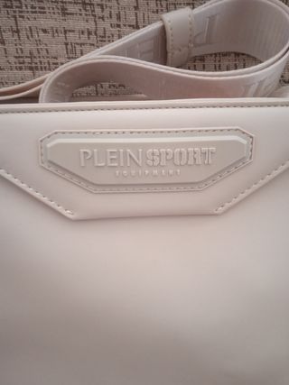 - Confeccionado en piel sintética, color azul marino, parte delantera troquelada y forro interior con bolsillos. - Asas cómodas para llevar en la mano o el antebrazo. - Placa metálica con el logo de la marca. - Medidas: 42 cms. de ancho × 32 de alto.