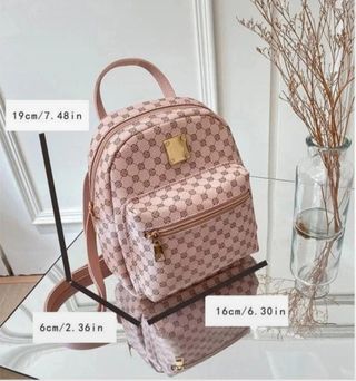 Preciosa mochila beige y marrón. Es pequeña y perfecta para el día a día. - Asa superior de cuero. - Correas de hombro acolchadas ajustables. - Compartimento principal con cierre de cremallera. - Bolsillo frontal con cierre de cremallera. - Espalda de malla transpirable.