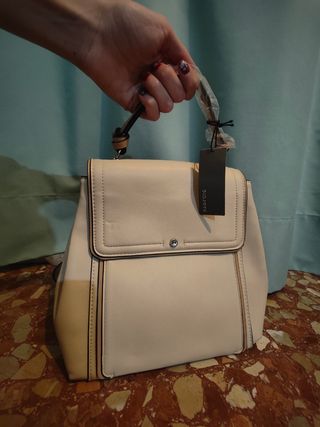 Mochila de mujer beige Parfois a estrenar con etiqueta. Cierre himán Medidas: Alto (sin asa) 26 cm Ancho 32 cm Tiene dos compartimentos en el interior con cierre de himán. En uno de los compartimentos también tiene una cremallera pequeña.
