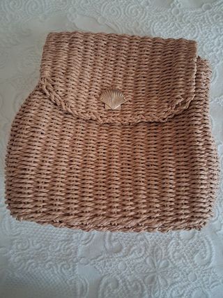 Precioso bolso de verano tejido a mano en mimbre color beige. Ideal para tus días de playa o piscina. - Asa de mano. - Cierre con broche de concha. - Diseño elegante y veraniego.