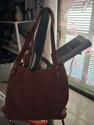 Bolso de mujer con un diseño moderno y elegante. - Material: tela tipo ante. - Color: marrón.