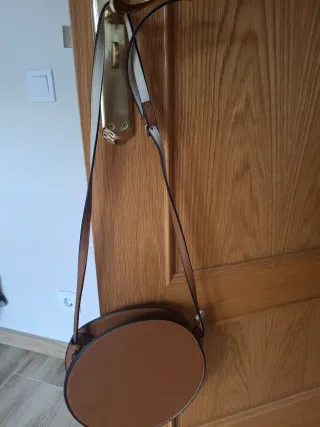 Bolsito de hombro de piel marron mujer. Muy cuqui. Con departamento exterior.
