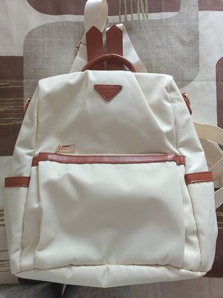 Mochila mujer/niñ@ Color beige/beige con interior de cremalleras negro Bolsillo interior Medidas 26x24x10cm