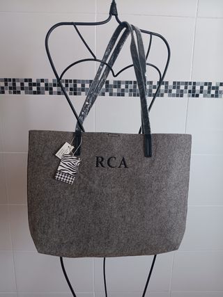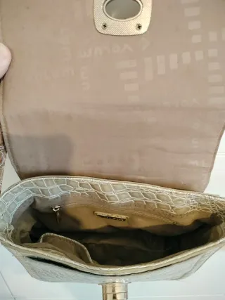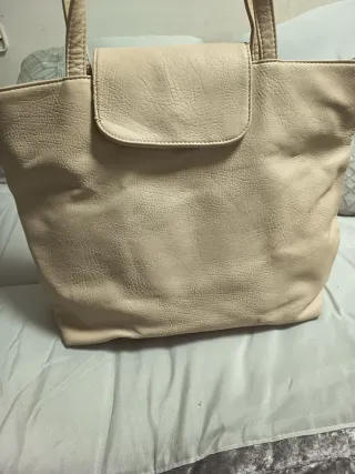Bolso de mano grande en color beige, con un diseño moderno y práctico. - Material: Piel sintética. - Cierre con solapa. - Asas cómodas para llevar al hombro o en la mano. - Algún signo del uso, ver foto