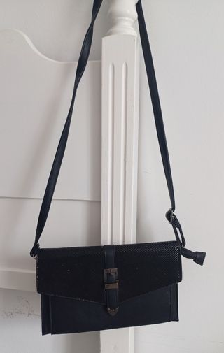 Bolso de mano o bandolera en color negro. - Diseño elegante y minimalista. - Compartimento principal con cremallera. - Bolsillo exterior. - Correa ajustable y extraíble. Sin estrenar ⚠️PRECIO NO NEGOCIABLE.NO ACEPTO OFERTAS⚠️