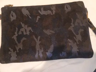 Bolso de mano pequeño para mujer con un diseño estampado. - Material: ante. - Cierre de cremallera. - Correa ajustable. Soy daltónica el color lo ha rellenado la IA.