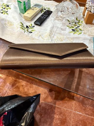 Bolso de mano con un diseño sofisticado y un acabado satinado. - Color marrón dorado. - Cierre de solapa.