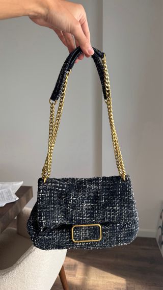 Bolso de hombro con un diseño tejido muy actual. - Material: Piel sintética. - Cierre de solapa. - Asa ajustable.