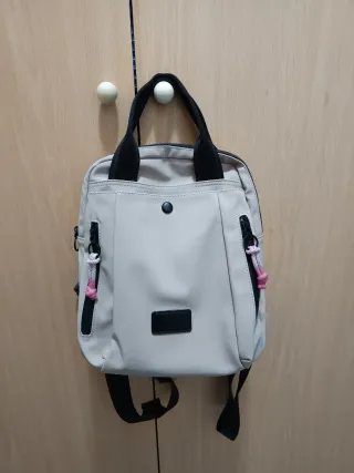 Vendo mochila práctica y moderna con un diseño versátil. - Compartimento principal con cierre. - Bolsillos exteriores con cremallera. - Asas de mano y correas ajustables. - Detalle de etiqueta negra en la parte frontal. Color beige con detalles en color rosa. Completamente nueva. Usada una vez. PRECIO NO NEGOCIABLE