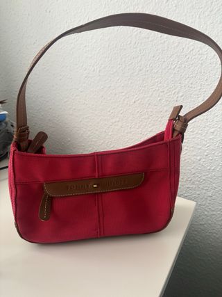 Bolso de mano Tommy Hilfiger con un diseño moderno y práctico. - Confeccionado en lona color burdeos y piel marrón. - Con cremallera exterior y bolsillo interior. - Logo Tommy Hilfiger impreso en piel. - Asa cómoda para llevar al hombro