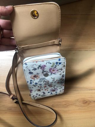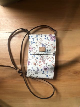 Bandolera de mujer con un bonito estampado floral. Perfecta para llevar lo esencial. Me la regalaron por mi cumpleaños pero no la he usado nunca porque no me gusta ese estilo.