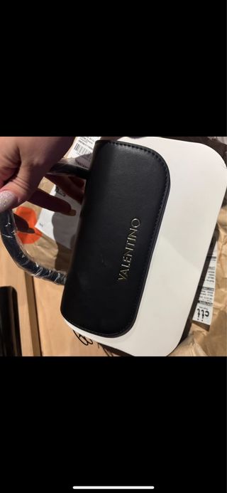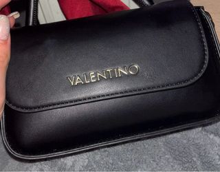Bolso de mano negro Valentino - Detalle del logo de Valentino en dorado.