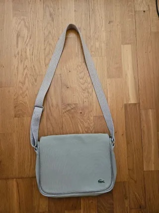 Vendo bolso bandolera de la marca Lacoste en color Beige, todas las cremalleras y cierres funcionan con normalidad. Se ha usado poco, como se ve en las fotos esta en muy buen estado. Tiene un bolsillo trasero que cierra con cremallera, la parte central tiene varios compartimentos, el interior es a rayas verdes y beige clarito. La inscripción de la marca Lacoste esta tanto en las cremalleras como hebillas. Se puede ver sin compromiso, venta en mano o envío por wallapop. Moda - Marca - Lacost - Mujer - Ropa