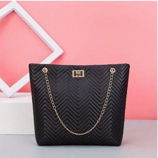 Elegante bolso de hombro negro de PU con cadena desmontable, patrón acolchado, ligero, lavable a mano, forro de poliéster -versátil para uso diario.
