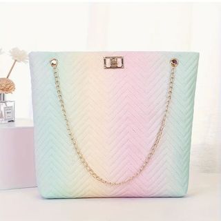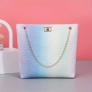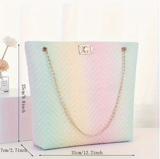 Bolso de hombro degradado pastel para mujer,Elegante bolso de hombro negro de PU con cadena desmontable, patrón acolchado, ligero, lavable a mano, forro de poliéster -versátil para uso diario.