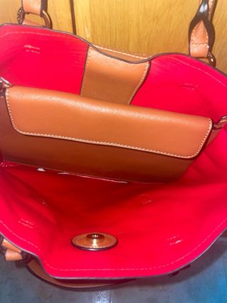 Bolso mujer imitación piel. Sin uso. Medidas: 40x28x12 cms. Bolso interior: 35x20x10 cms.