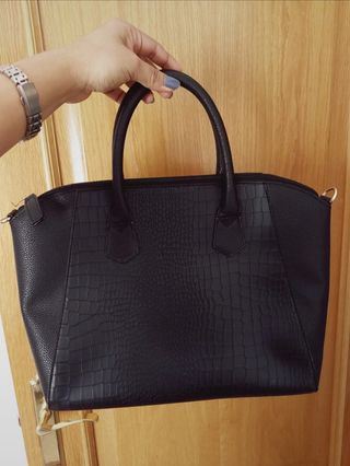 bolso negro con bordes beig muy bonito y comodo usado solo dos ratos