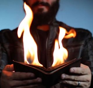 Cartera de magos para uso normal y para sorprender por la opción a abrirla con fuego. - Material: Cuero. - Combinación de colores: Negro y marrón.