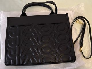 Bolso de Bershka en color negro con detalles de cadena metálica. - Asa corta de cadena. - Cierre de cremallera. - Diseño moderno y versátil. - Algo rasgado en parte inferior (no se nota)