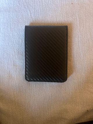 Cartera para hombre con un diseño moderno y elegante. - Material con textura de fibra de carbono. - Costuras reforzadas en los bordes. - Con bloqueo RFDI, diseño elegante