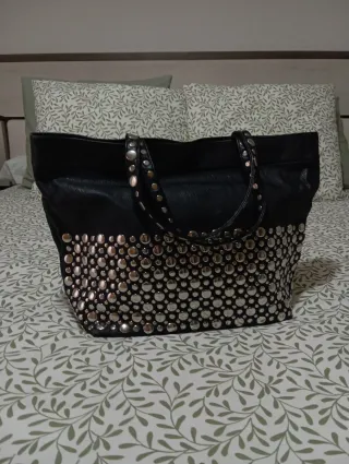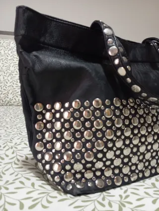 Bolso negro grande con tachuelas